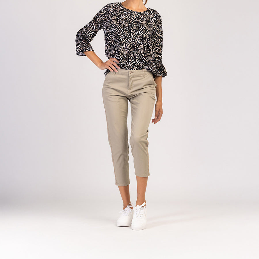 Αυτό το γυναικείο μπλουζάκι με μανίκια 3/4 σαγηνεύει με ένα εκλεπτυσμένο μπεζ σχέδιο που συνδυάζεται εύκολα με οποιοδήποτε στυλ. Κατασκευασμένο από απαλή βισκόζη, προσφέρει ευχάριστη αναπνοή, άνεση και μια χαλαρή αλλά εκλεπτυσμένη εμφάνιση.