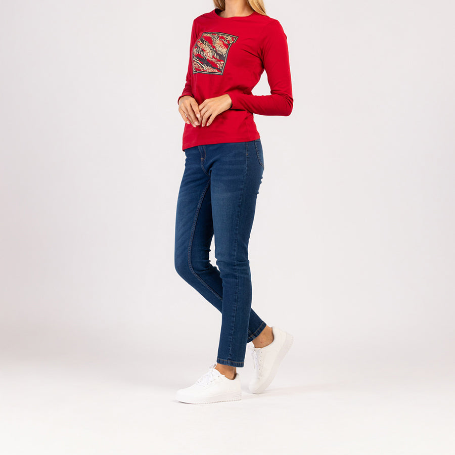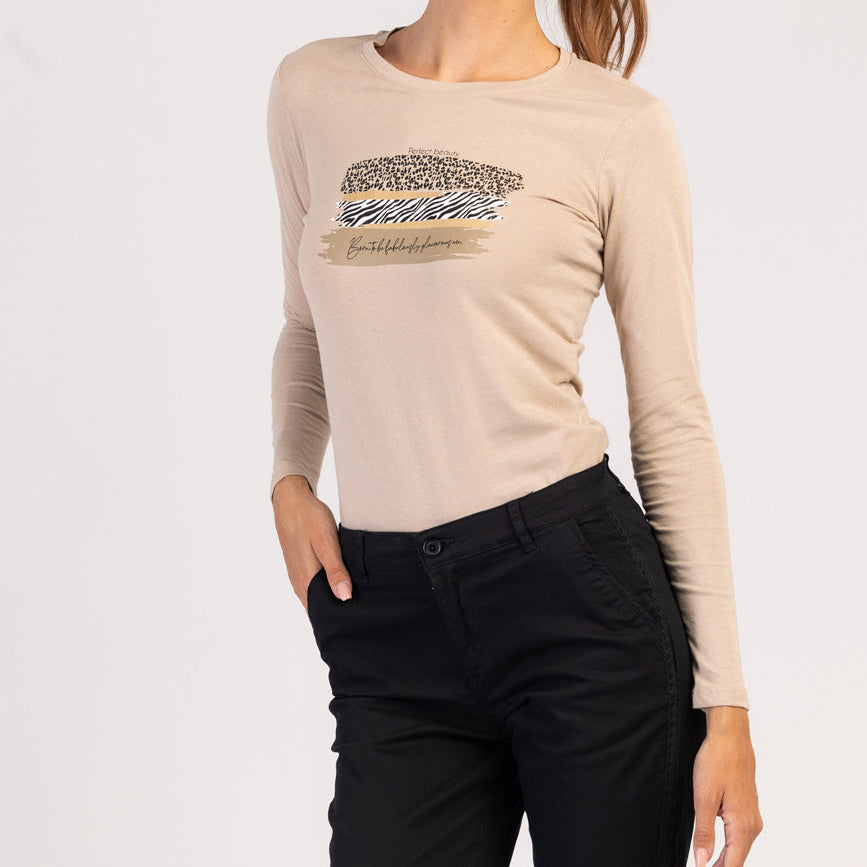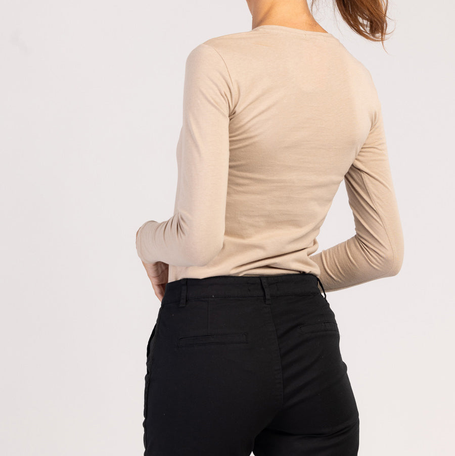 Ένα βαμβακερό μπλουζάκι με μακριά μανίκια που συνδυάζει άνεση και μοντέρνα εμφάνιση για καθημερινή χρήση. Το απαλό, αναπνεύσιμο ύφασμα αγκαλιάζει άνετα το δέρμα, ενώ η κλασική κοπή εξασφαλίζει τέλεια, απεριόριστη εφαρμογή.