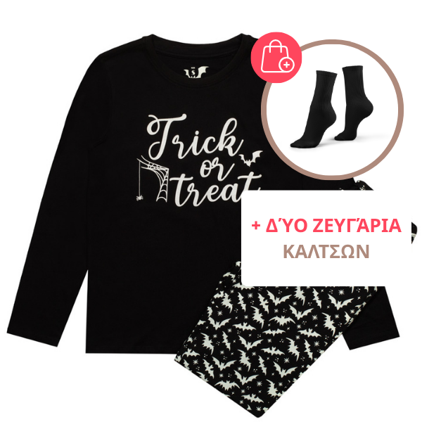 Αυτές οι κομψές μαύρες πιτζάμες με μια διακριτική πινελιά Halloween συνδυάζουν παιχνιδιάρικη διάθεση και άνεση. Κατασκευασμένο από 100% βαμβάκι, αναπνέει στο δέρμα και προσφέρει μια ευχάριστη αίσθηση ζεστασιάς και χαλάρωσης.